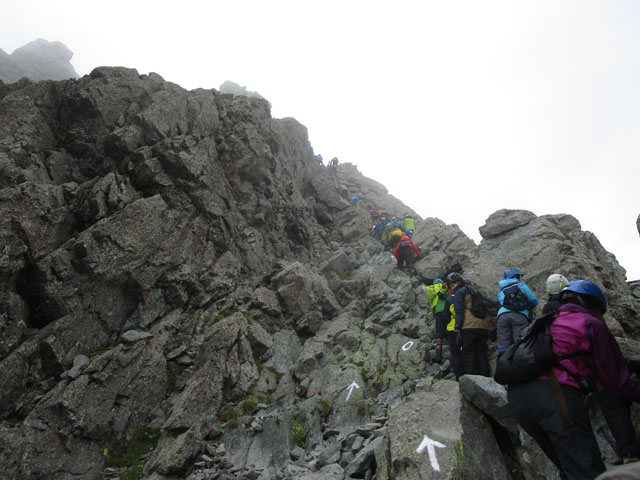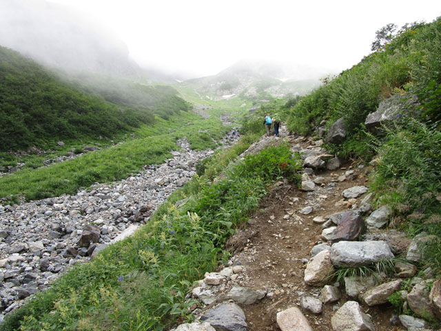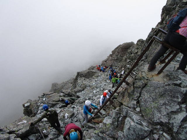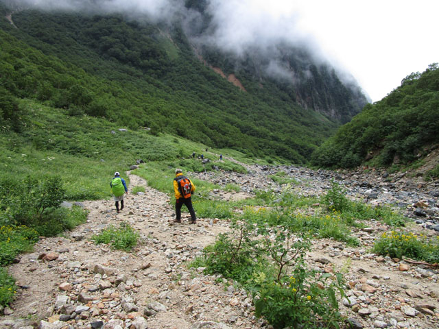 今日はガスっているので頂上にも行かずただちに下山するのみである。