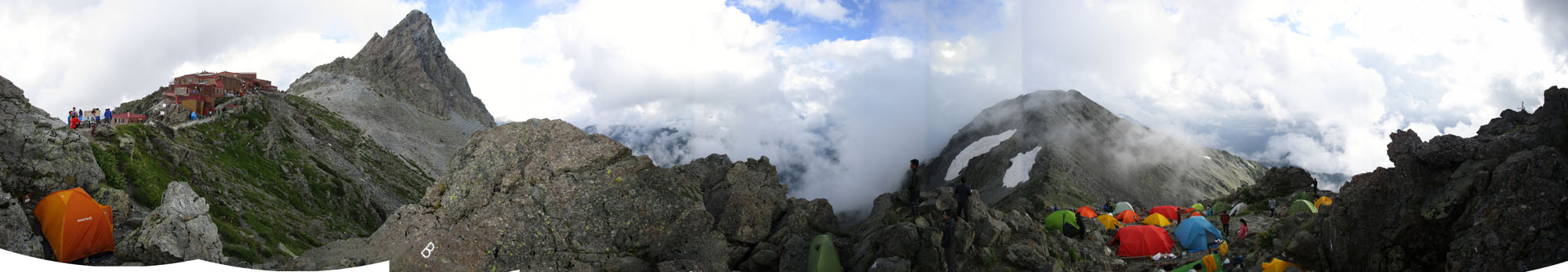 ここも穂高岳山荘テント場に負けず劣らずの絶壁テントサイトだ。