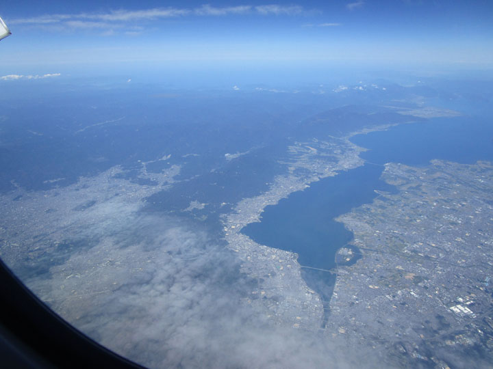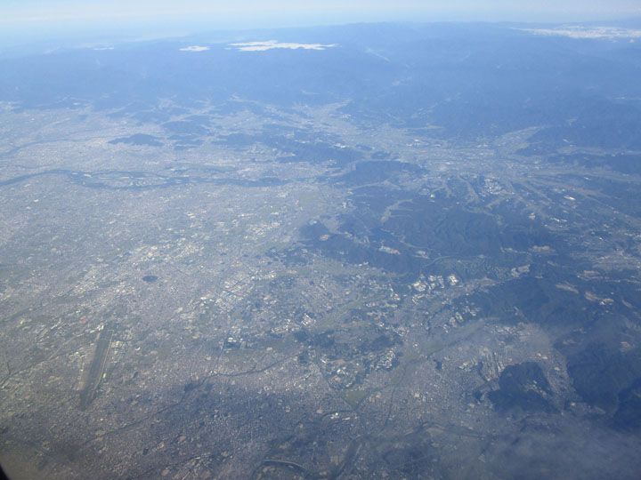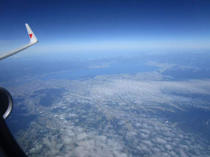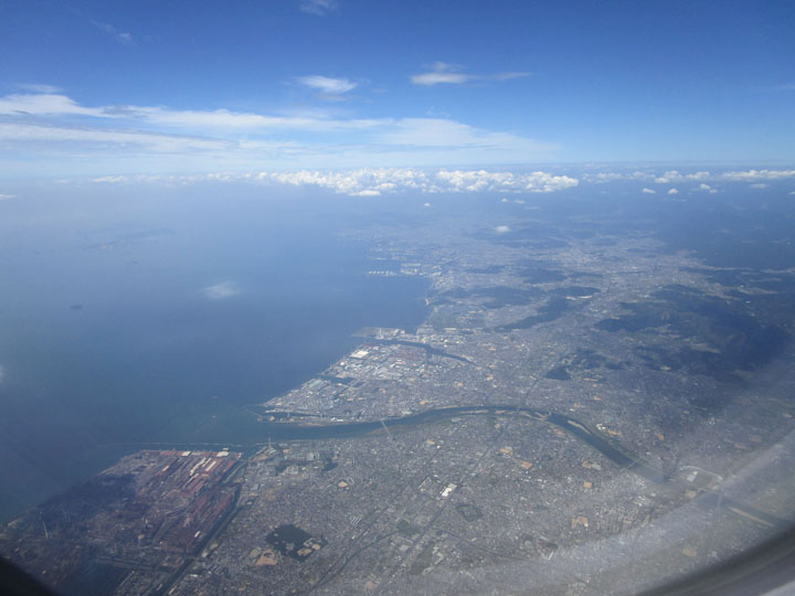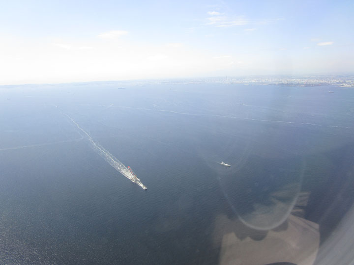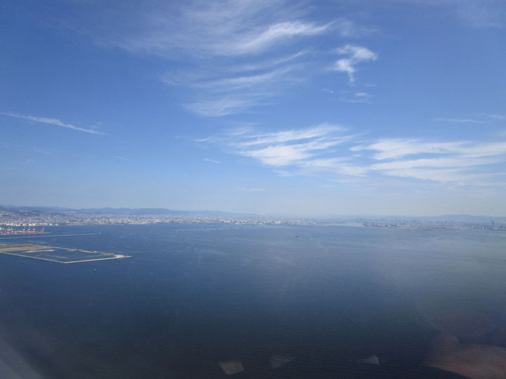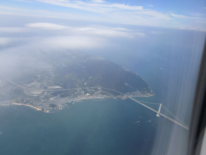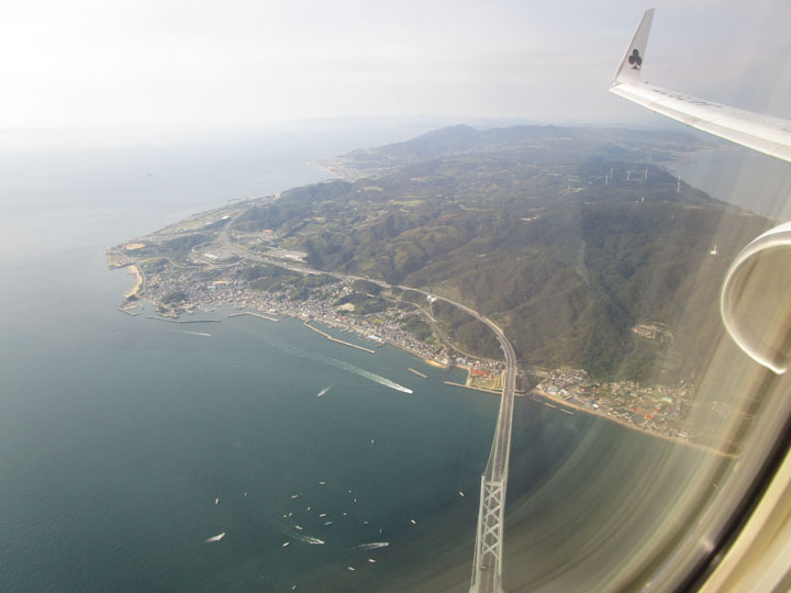 着陸時と同様に明石海峡大橋を超えるが、高度は倍の1800m程度。