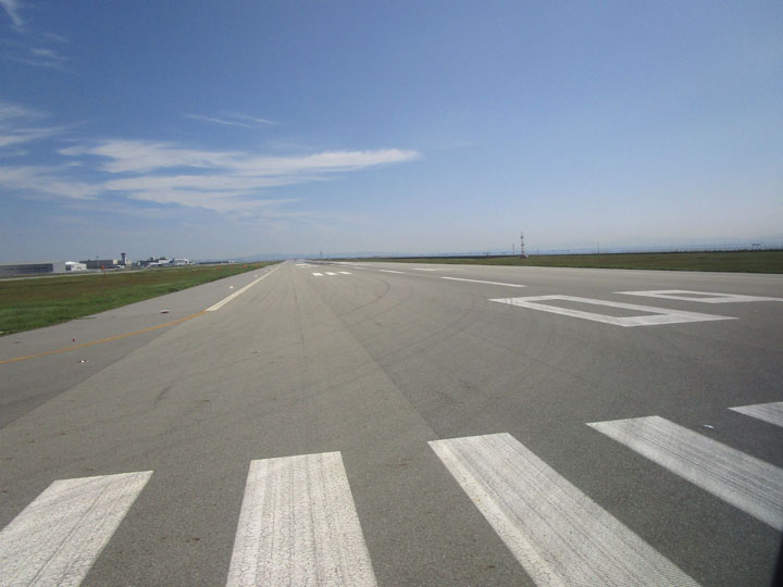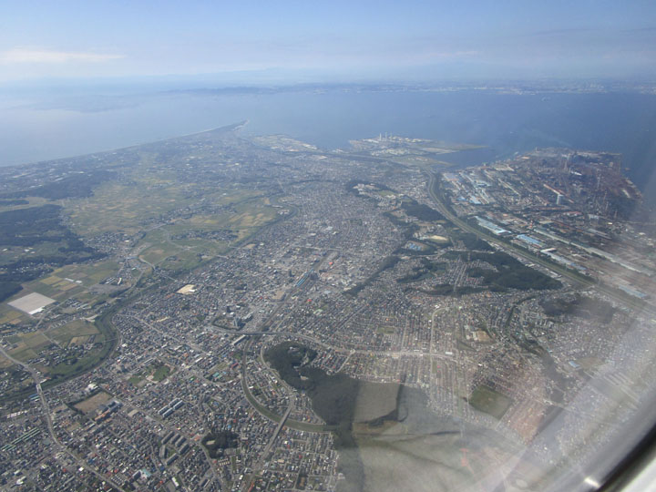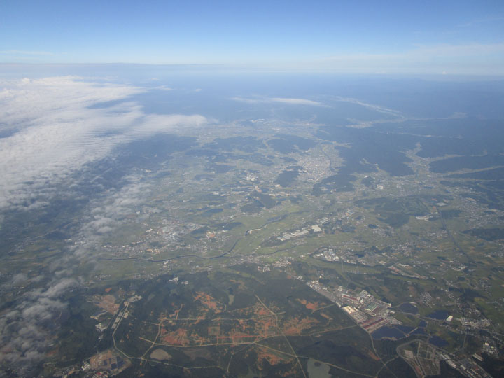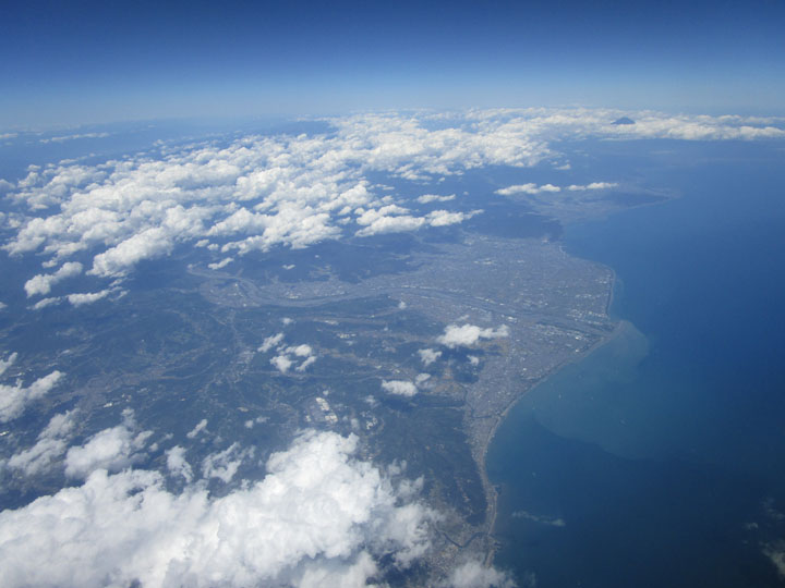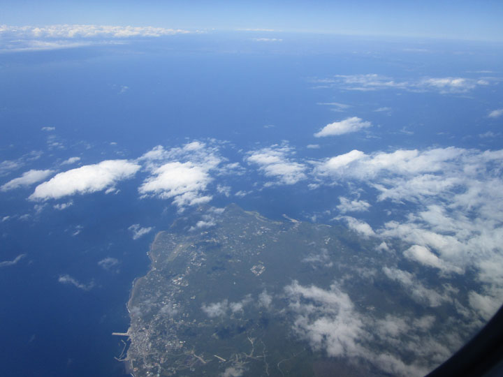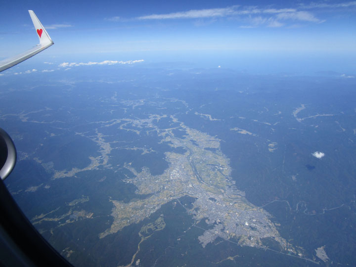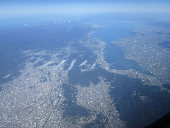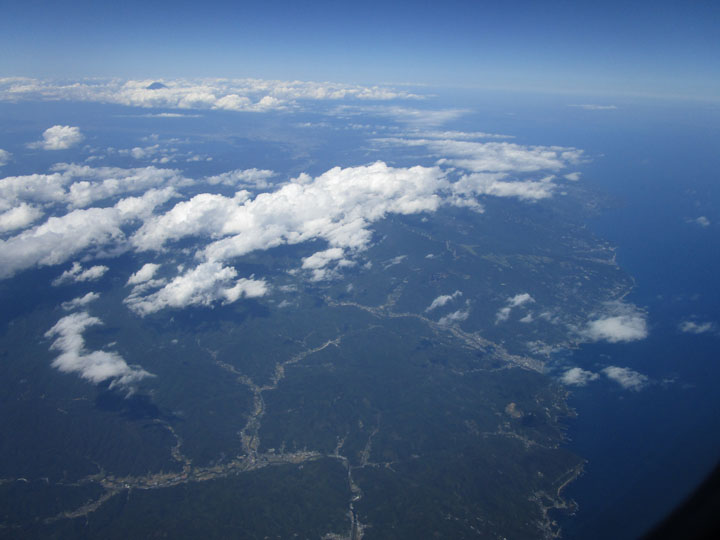 着陸時と同様に明石海峡大橋を超えるが、高度は倍の1800m程度。