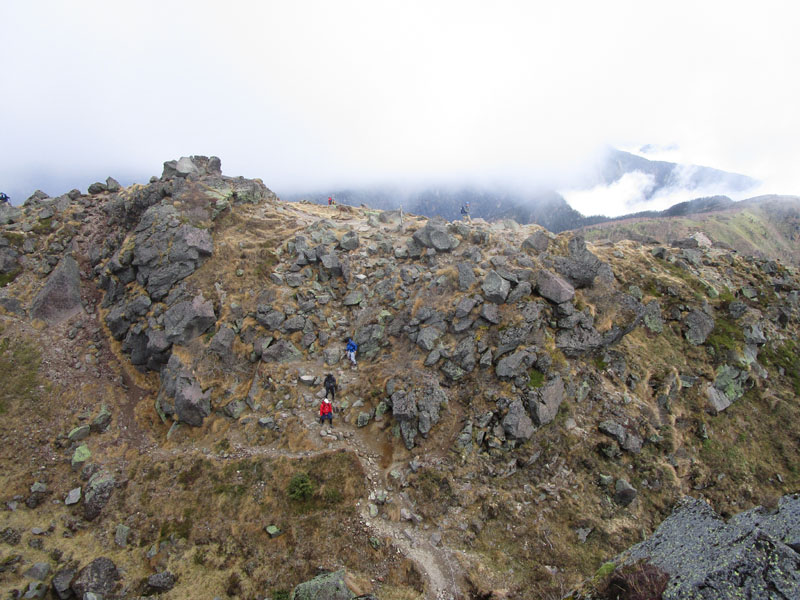奥白根山の山頂へは、ロープウェイからの西面のルート、