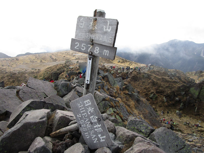 山頂標識は2つあり、「白根山2578m」「日光白根山2.578m」の2種類。