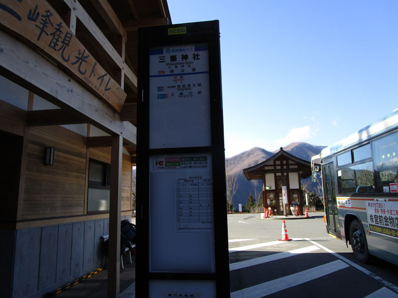 三峰神社はバスが毎時1本あり、しかも毎時30分発なのでわかりやすいが、
