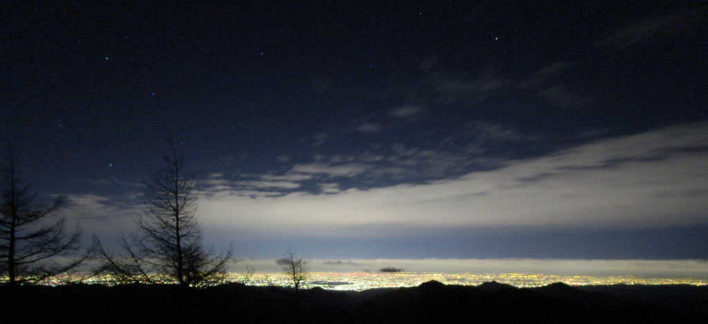 暗くなってくると市街地の夜景が輝きだした。