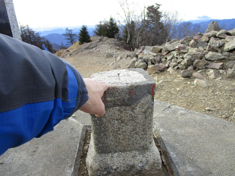 誰もいないので三角点に置いて自撮りだな。