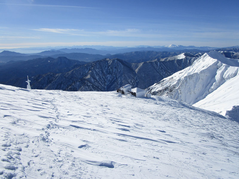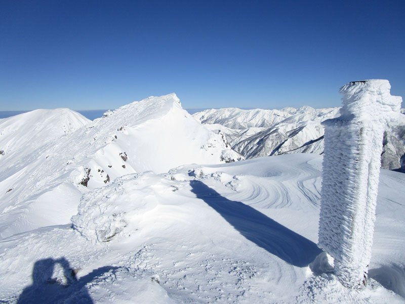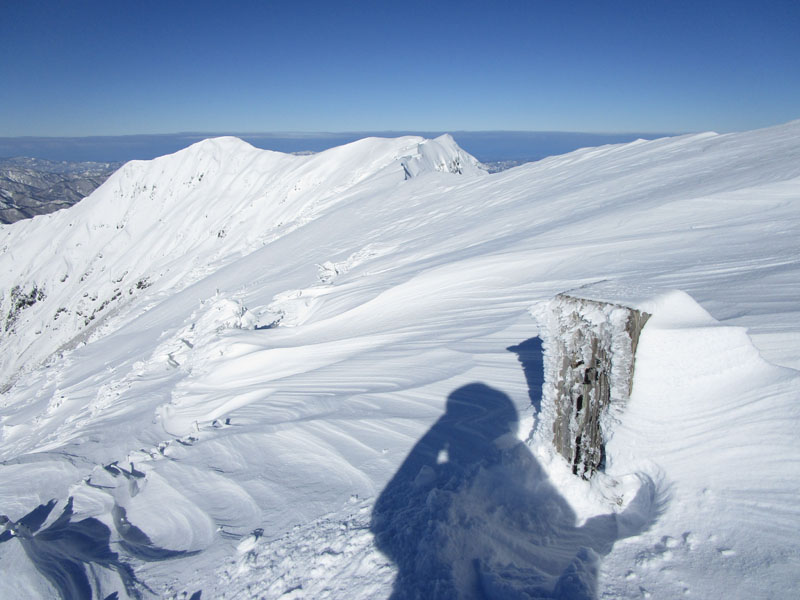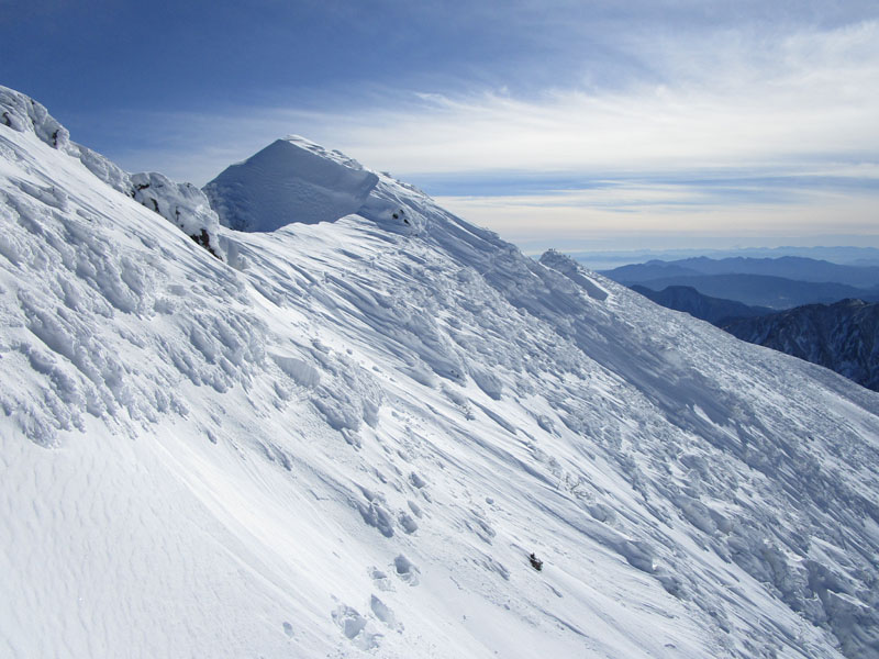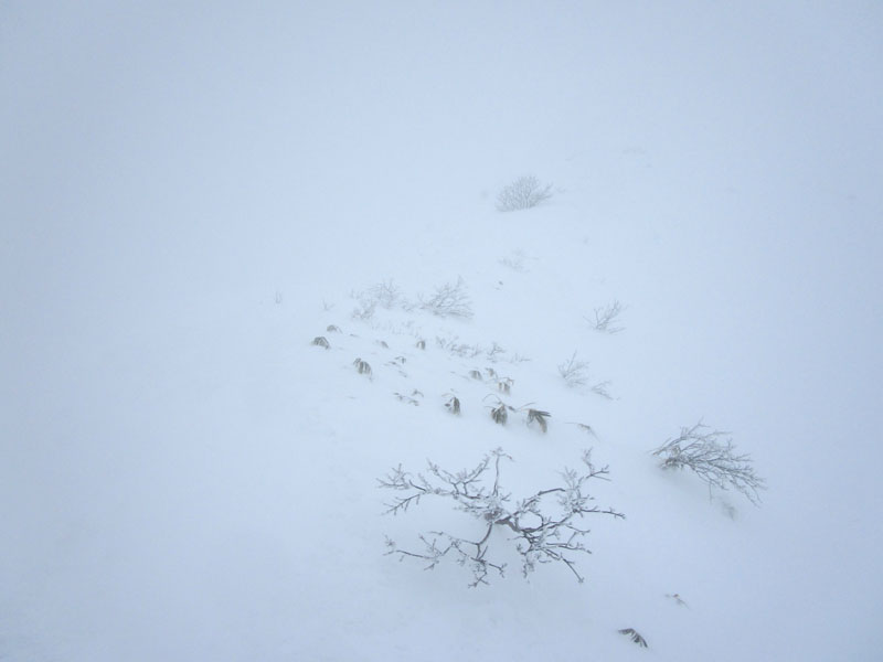 まだこの写真はマシで、天神ザンゲ岩(1830m)から先は、視程5mの濃密な暴風雪。
