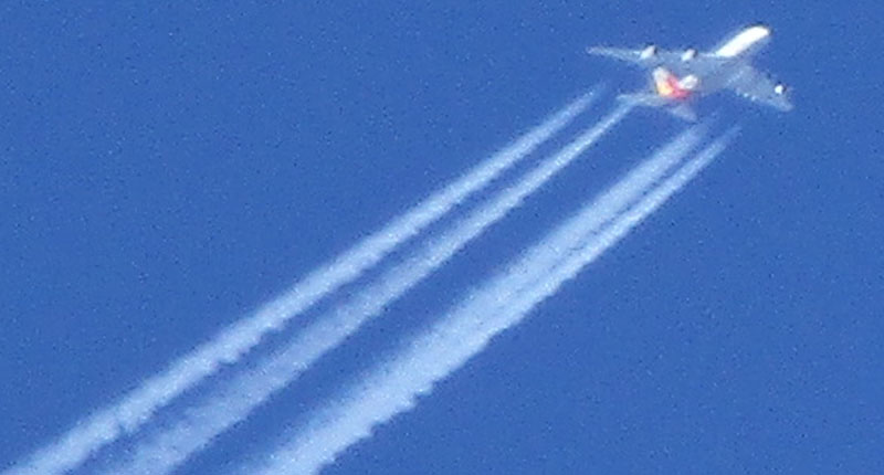 エアバスA380が直上を通過。