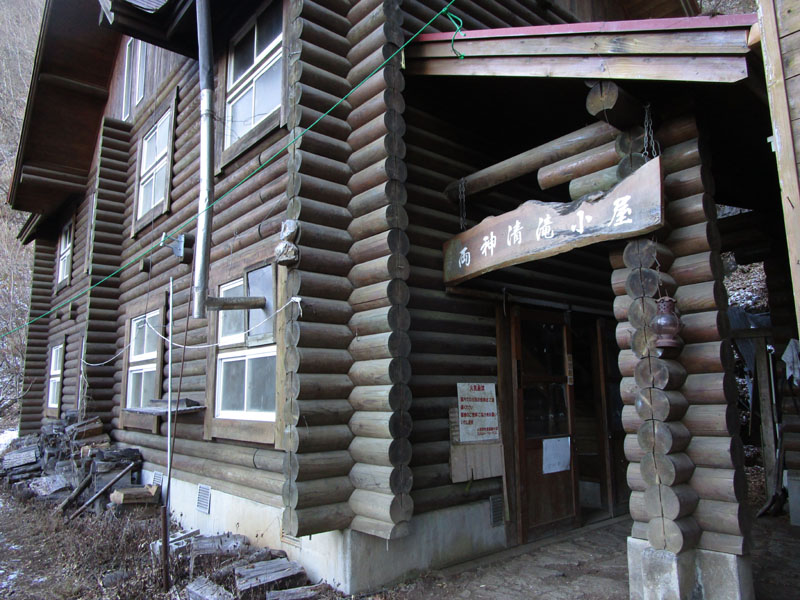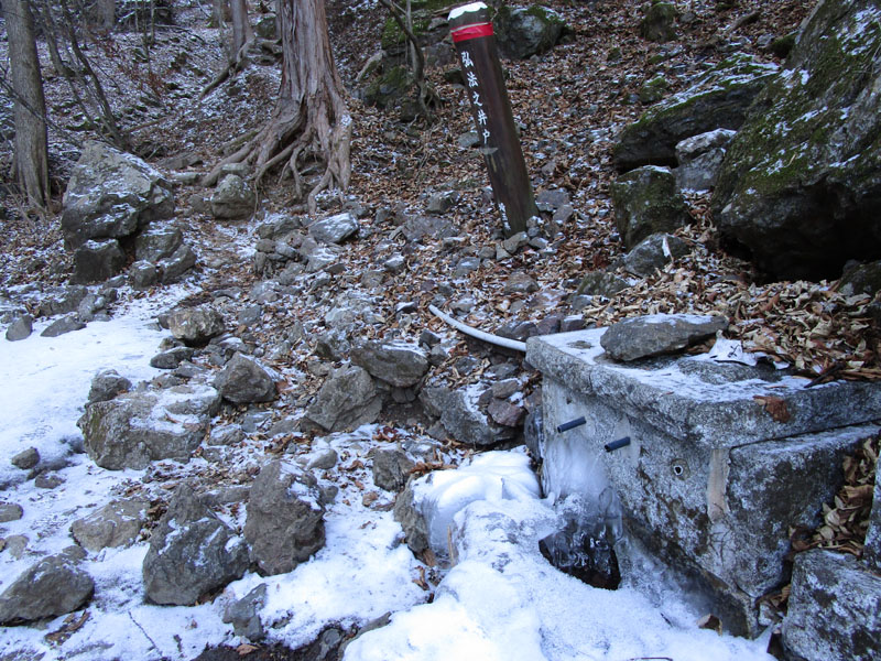 清滝小屋の冬用水場は凍結して使用できない。残念。