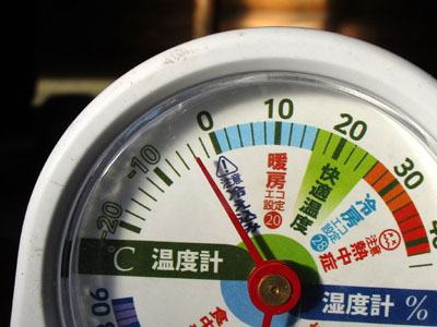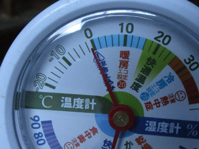 室内はマイナス1℃程度だった(スマホバッテリーが0℃だったため)。