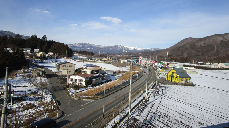 上毛高原駅付近の高架橋からは草津白根山方面が見える。
