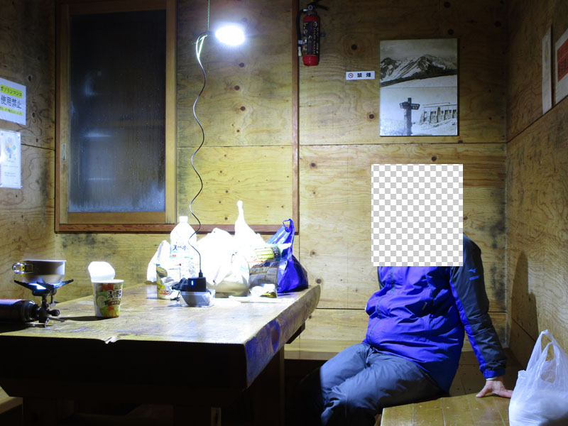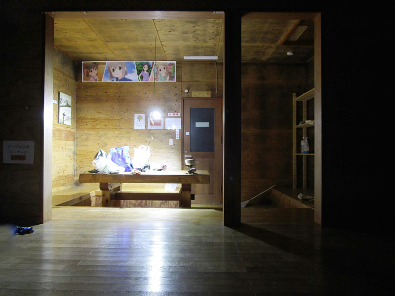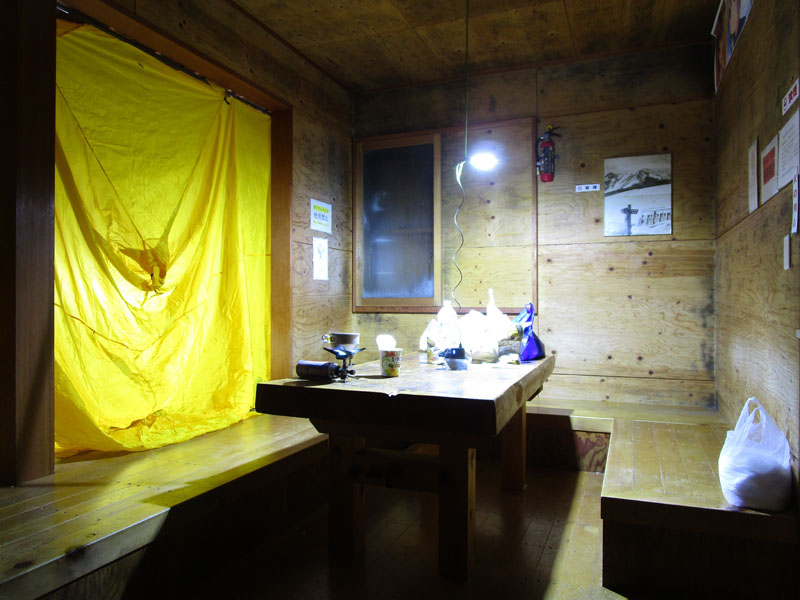 寝室と食堂が山岳会パーティのツェルトで閉鎖されている。