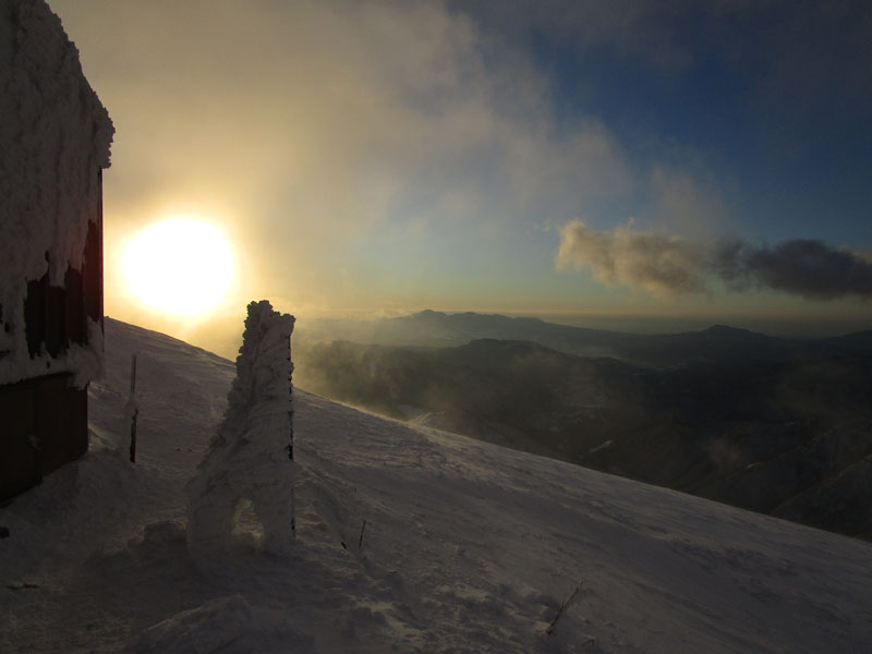 手前の雪が茶色くなっているのは同じ宿のおっさんが立小便していたため。
