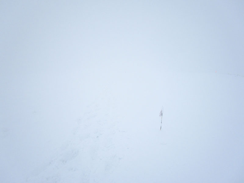 1晩の風雪でトレースも消えているため、もし旗がなければGPS誘導だな。
