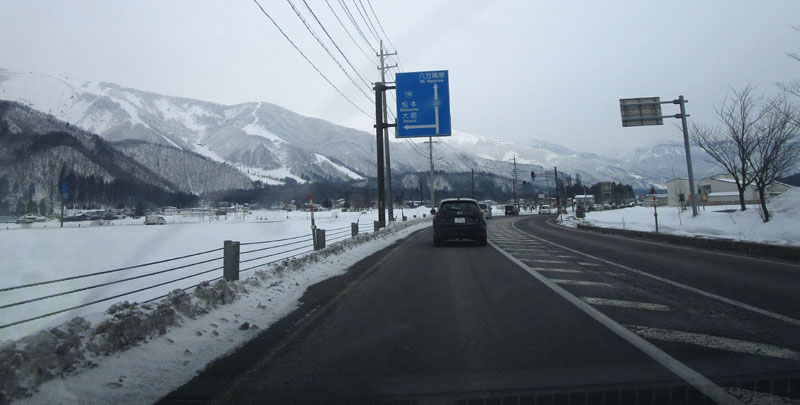 「おびなたの湯」に至る県道では、BCスキーヤーが道路を滑走していて楽しそう。