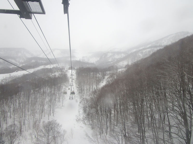 ゲレンデトップまでは、ゴンドラとアルプス第1リフトを乗り継ぐ。