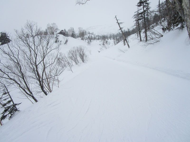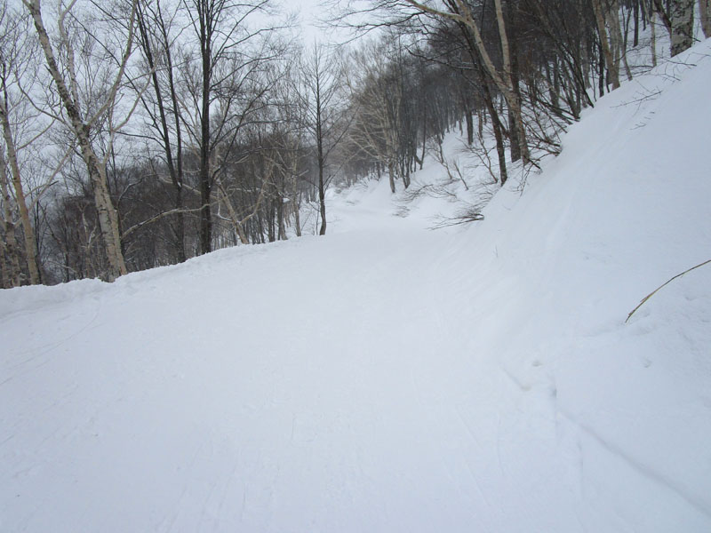 標高1650m地点でゲレンデから林道にとりつく。