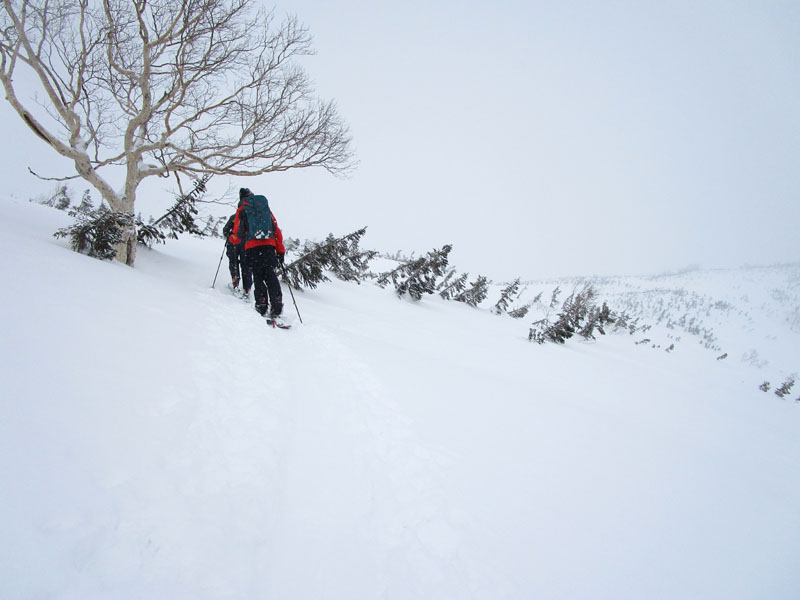 天狗原に出るあたりの斜面は斜度がきつく、ここも雪崩がやや不安。