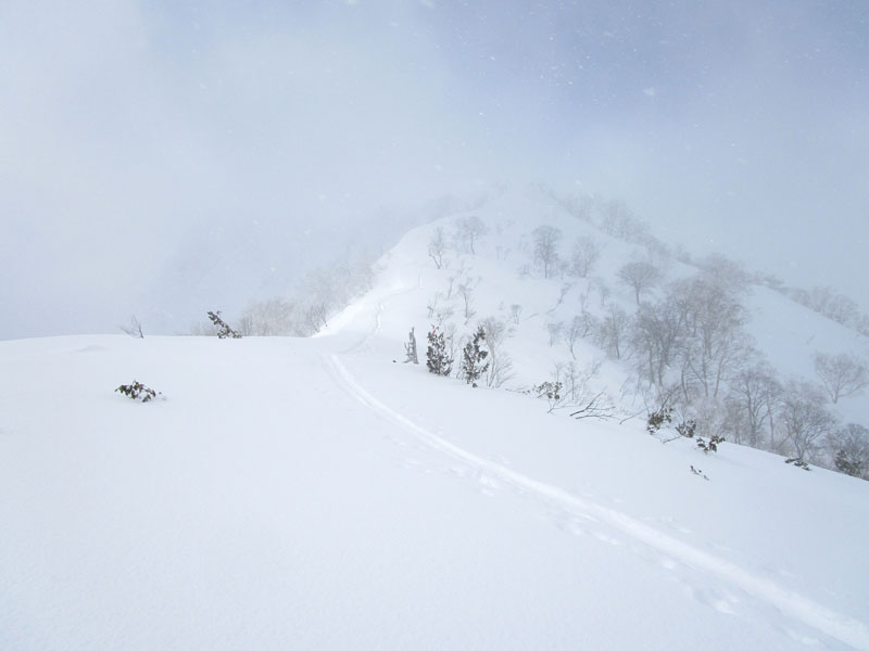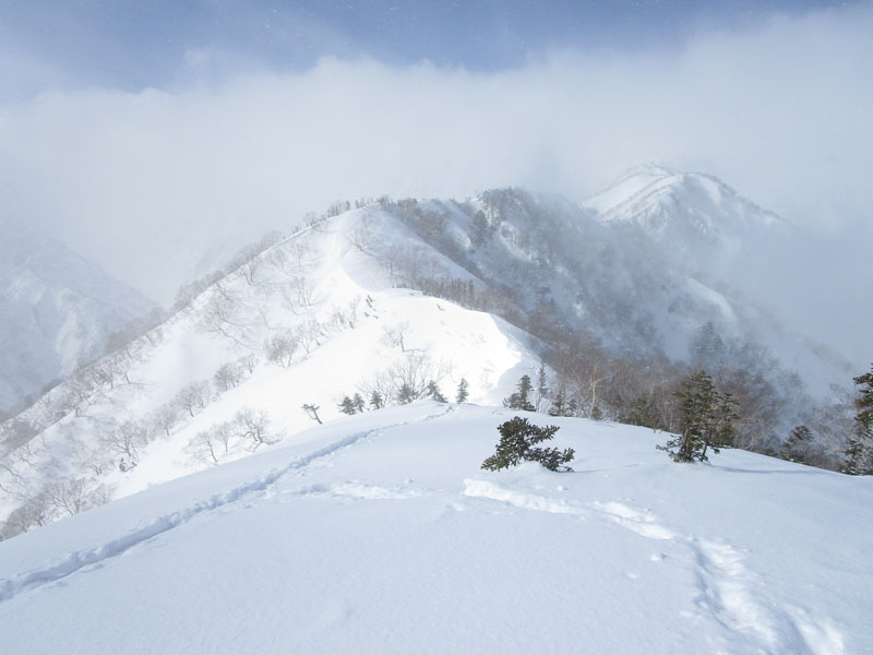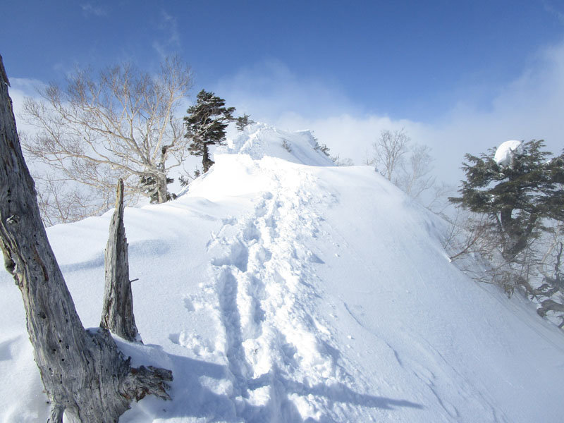 雪庇と滑落に厳重注意。