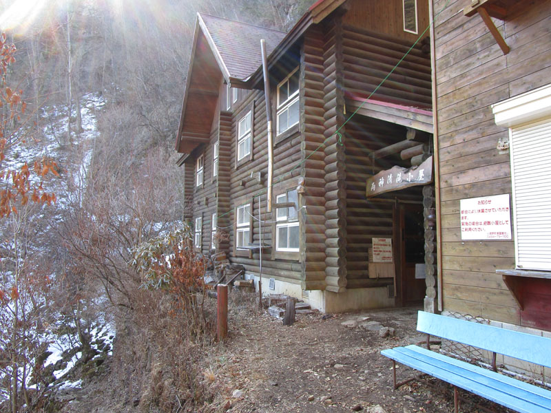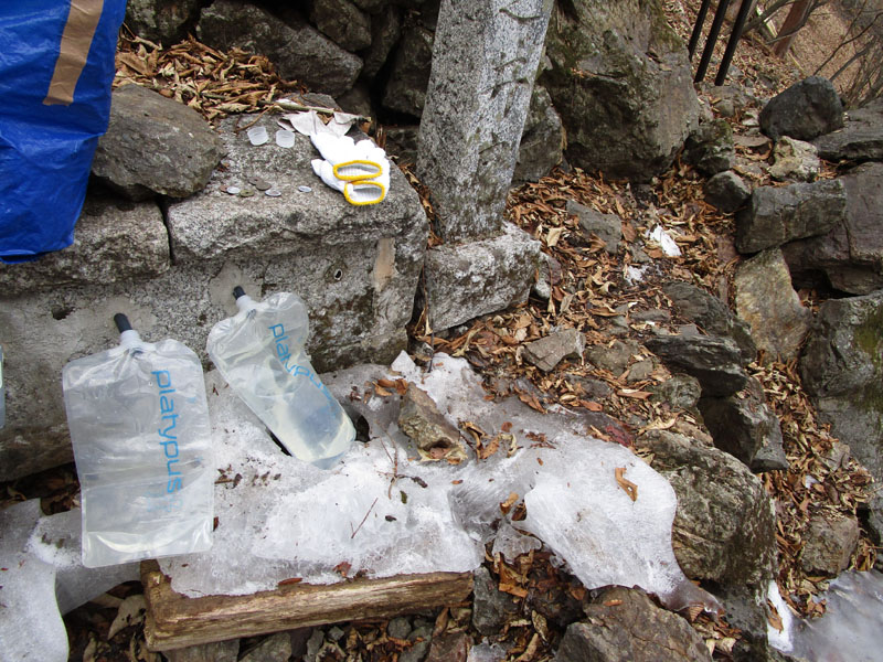 小屋の水場は凍結しているので、たっぷりと給水していこう。