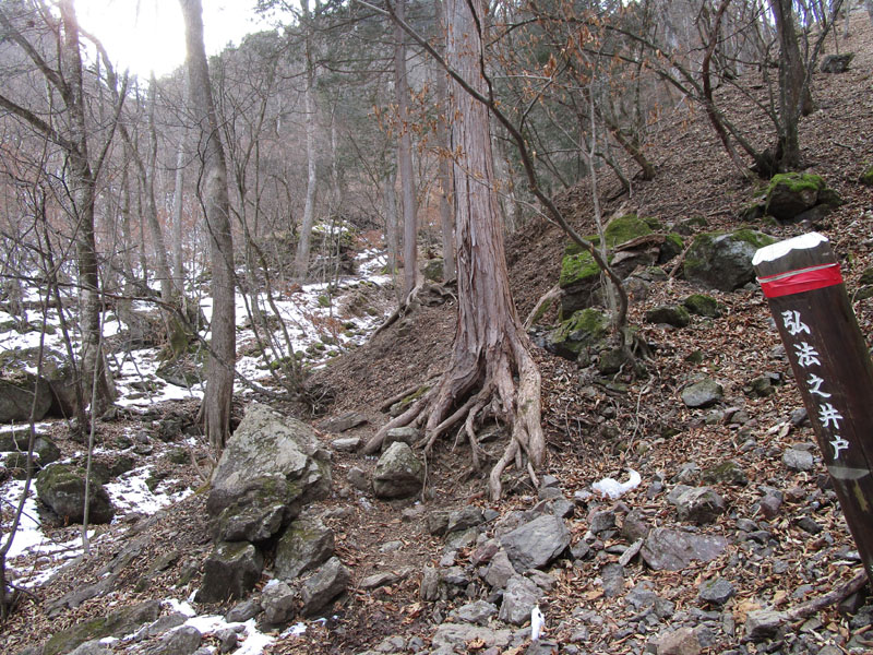 産体尾根(1420m)〜両神神社間は、下りはアイゼンが必要だ。