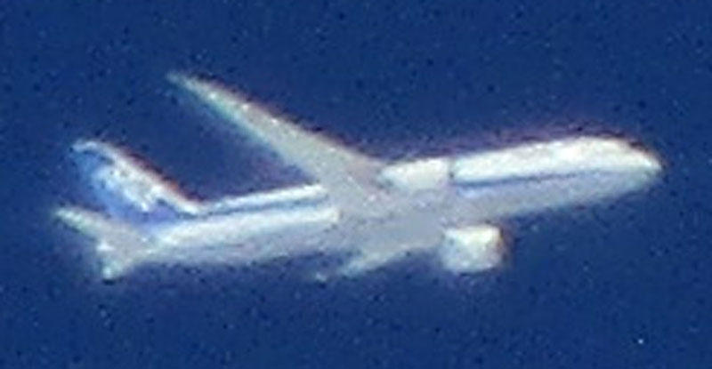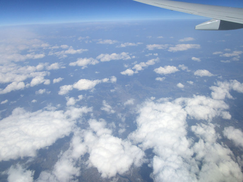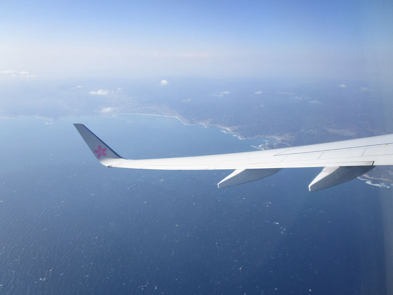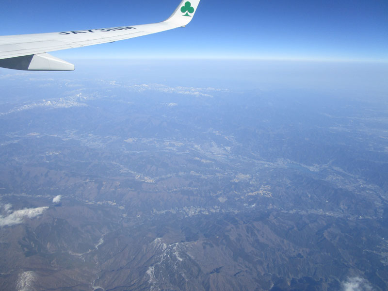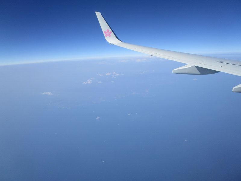 途中、ANAのB787と平行に飛行。(写真中央上)