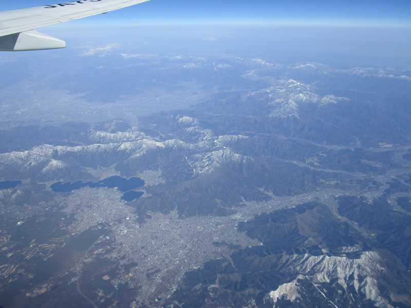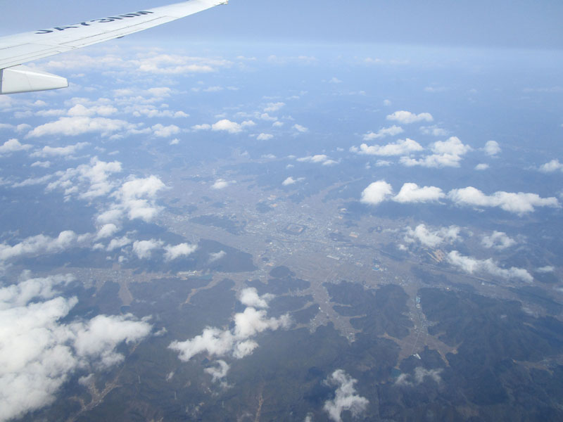 市街地の上で、北方面との航空路と交差。