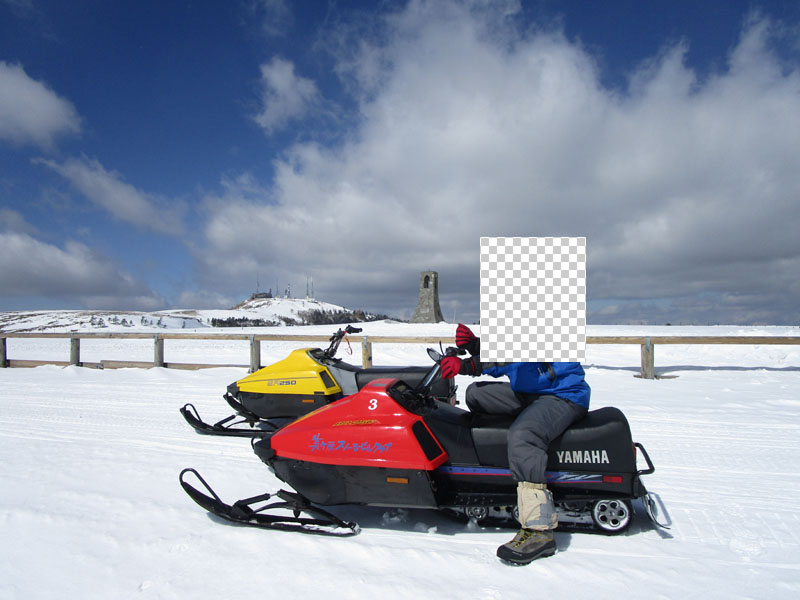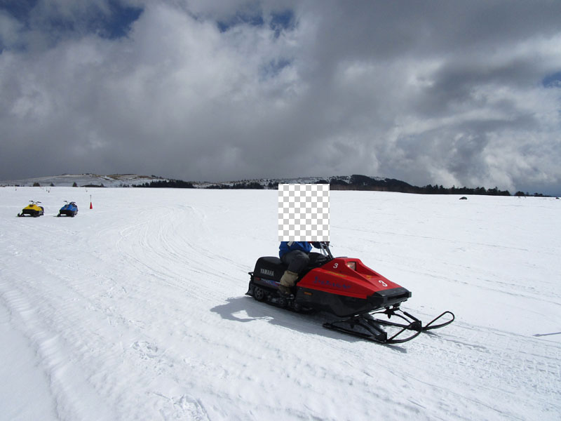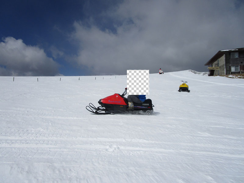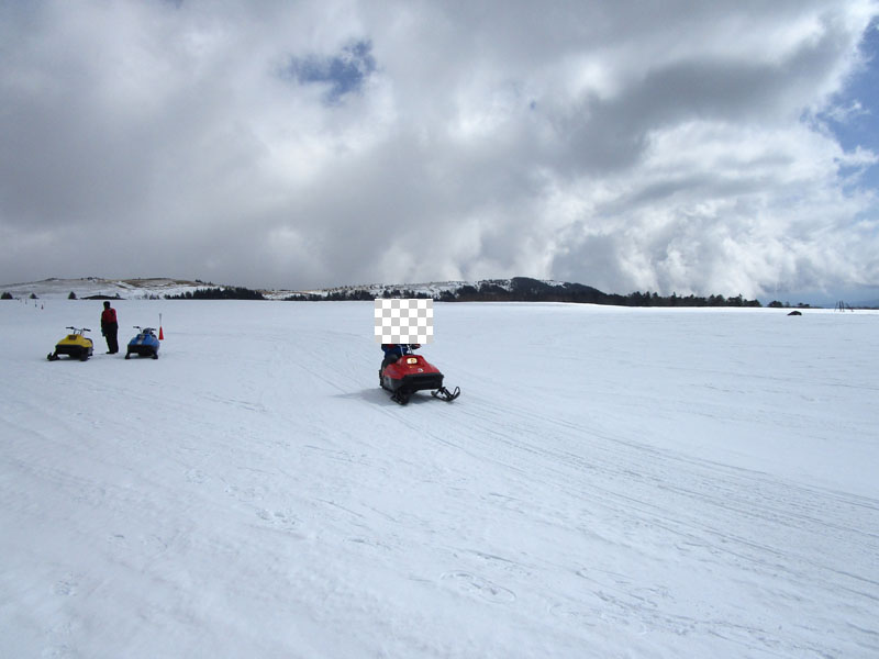 で、朝食後、準備をしてスノーモービルに乗る。小型の250ccタイプだ。