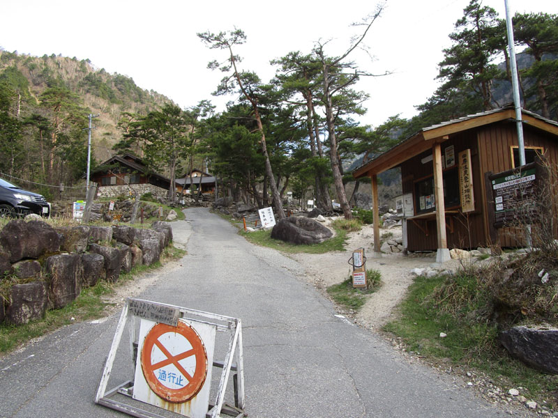 道路には通行止(車両通行止ではなく、人も含めて通行止)標識のあるバリケードが置いてあるが、
