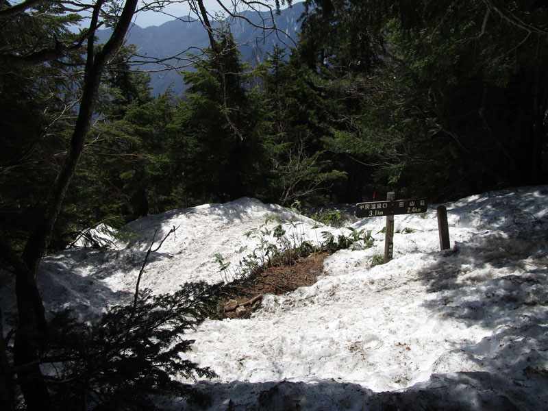 下ると雪が少なくなってくる。