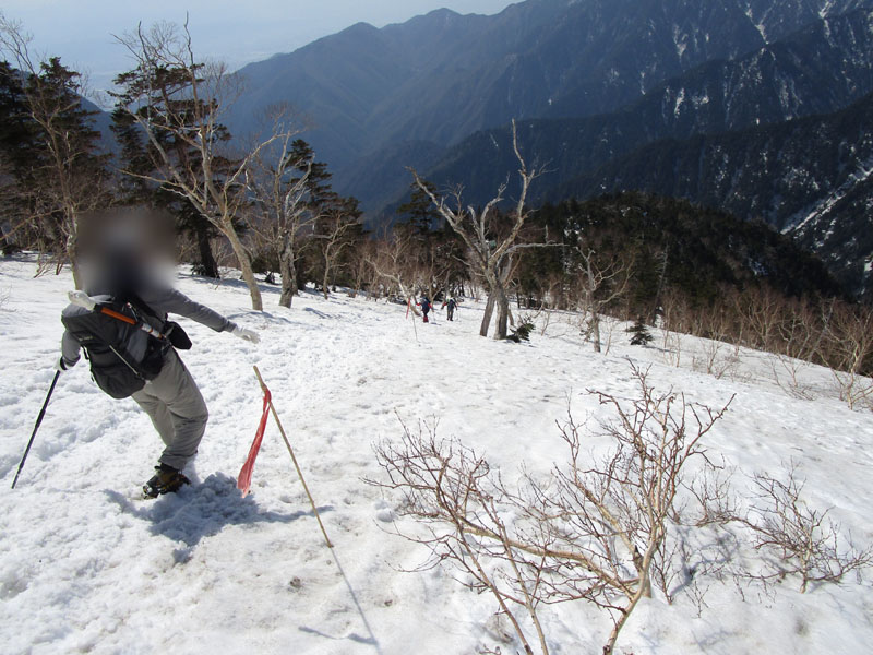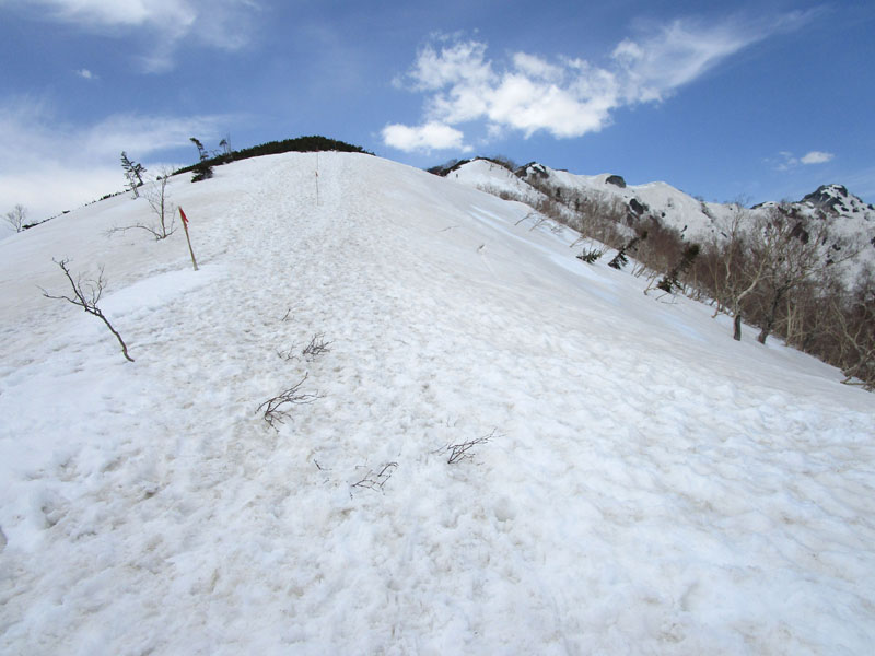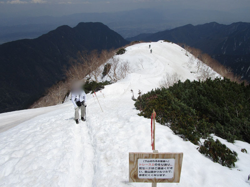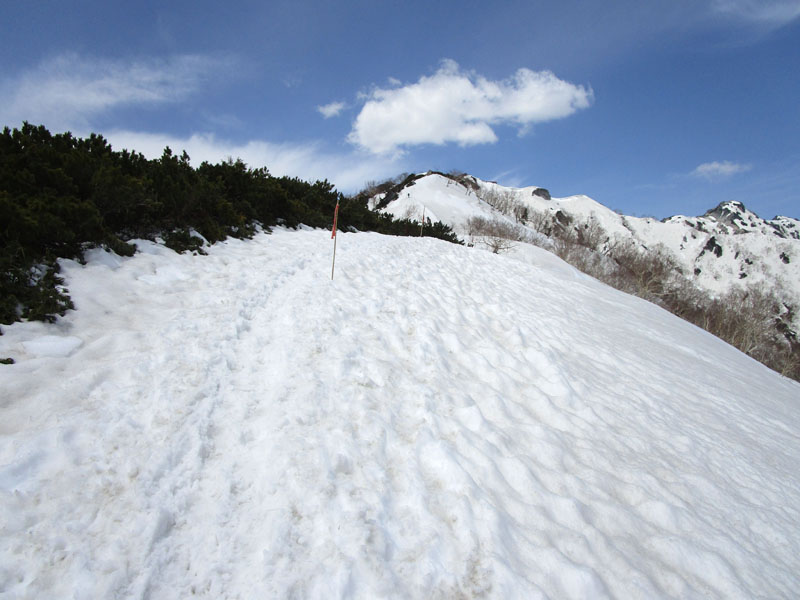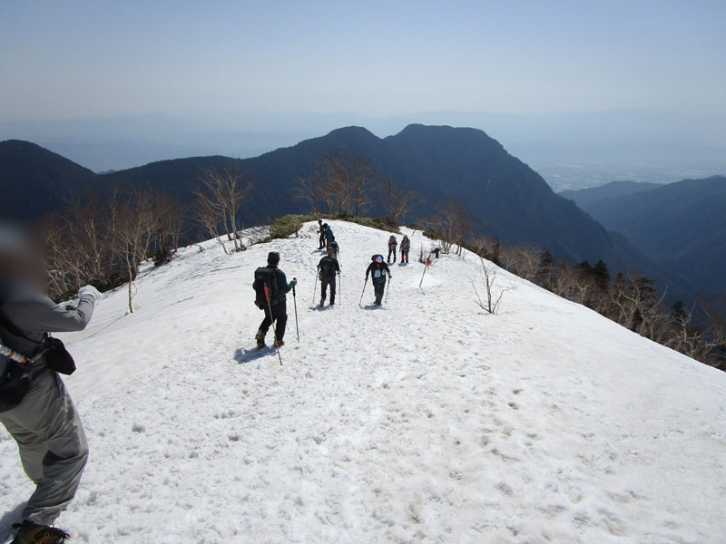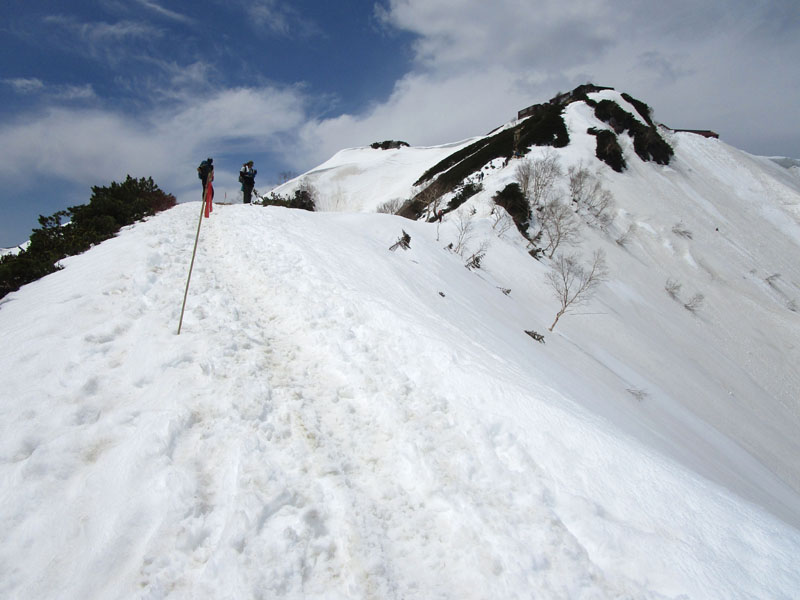 ここから上も全面雪だが、左右が切れ落ちているので、雪が硬いときには滑落に要注意。
