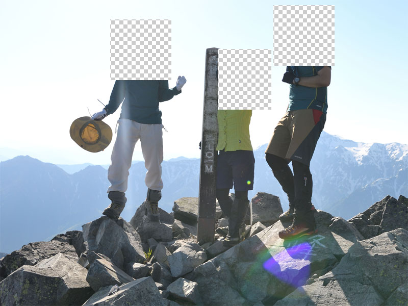 上記写真の奥穂高を拡大。人が居るようには見えない。