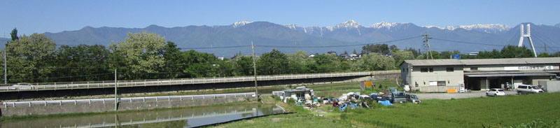 篠ノ井線からは冠雪した北アルプスが見えて美しい。