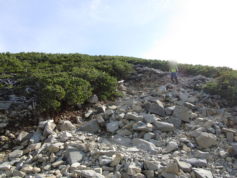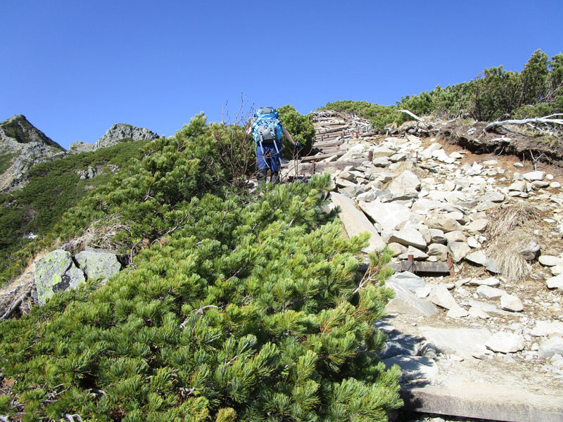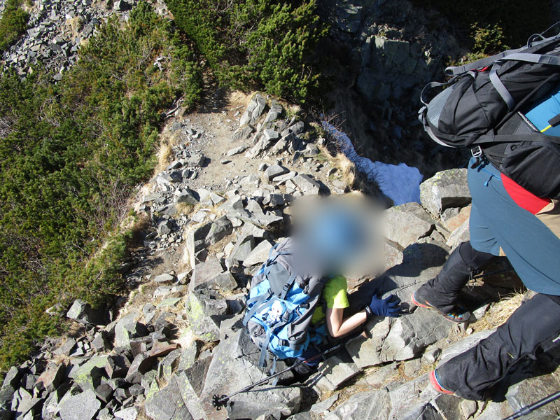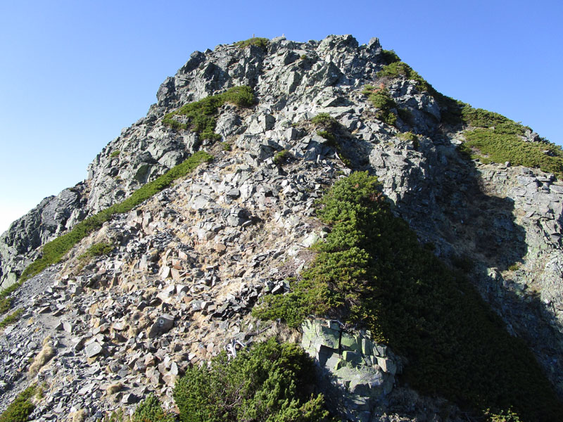 西穂独標の山頂直下だけは、岩場になっていて注意。