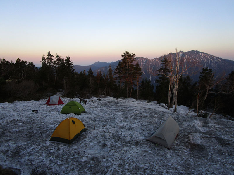 とりあえずテントを建設し、荷物を放り込んで、西穂独標を目指そう。
