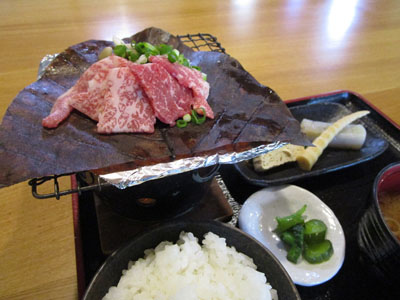 帰りは「ひらゆの森」に寄り、飛騨牛の味噌定食を食べる。