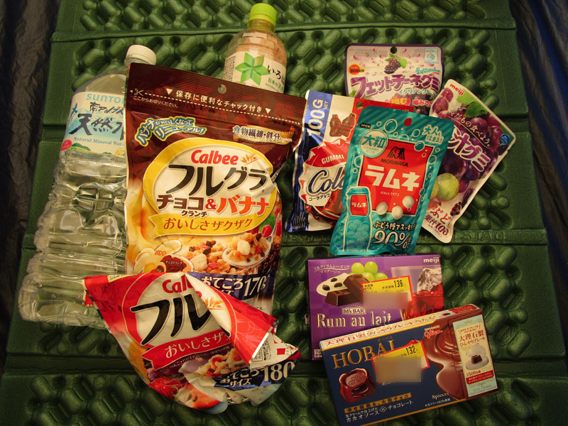 今回搬入食糧。小屋で夕食にする前提のため少なめ。