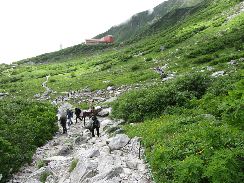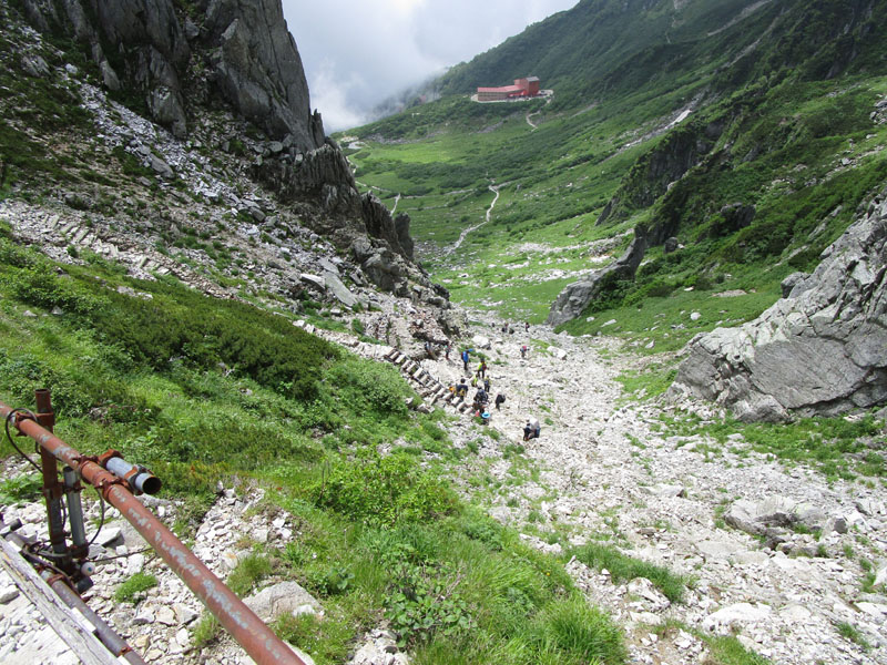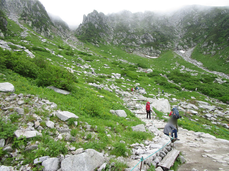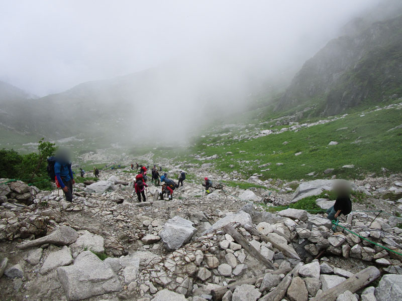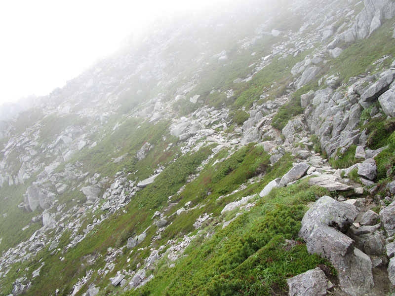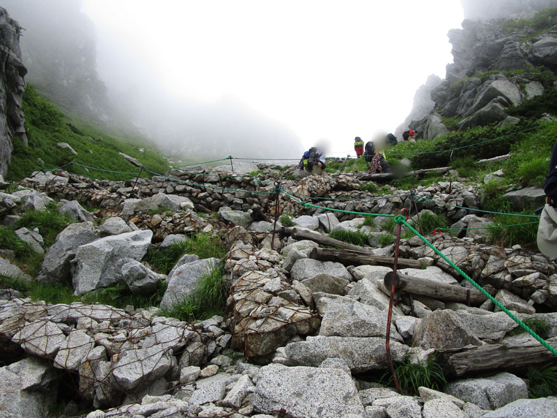 雷が鳴っているので中岳トラバースルートで進む。