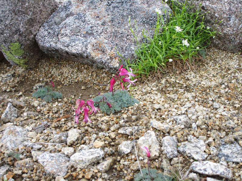 砂利地にはコマクサが生えている。