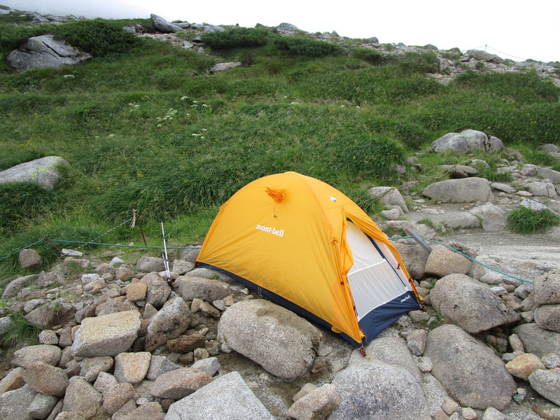 モンベル#2(快適2℃まで)+薄手ダウンジャケット+ホッカイロ2枚で、ぬくぬく熟睡。