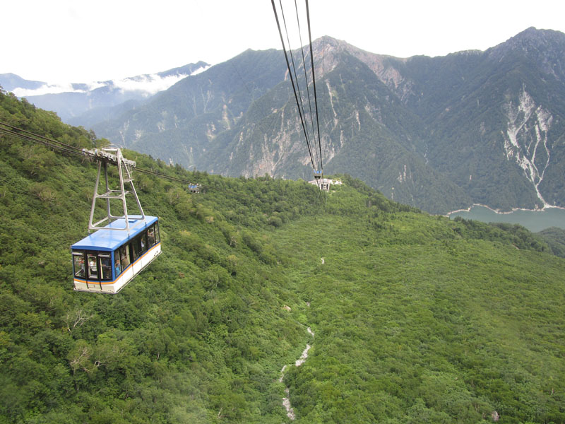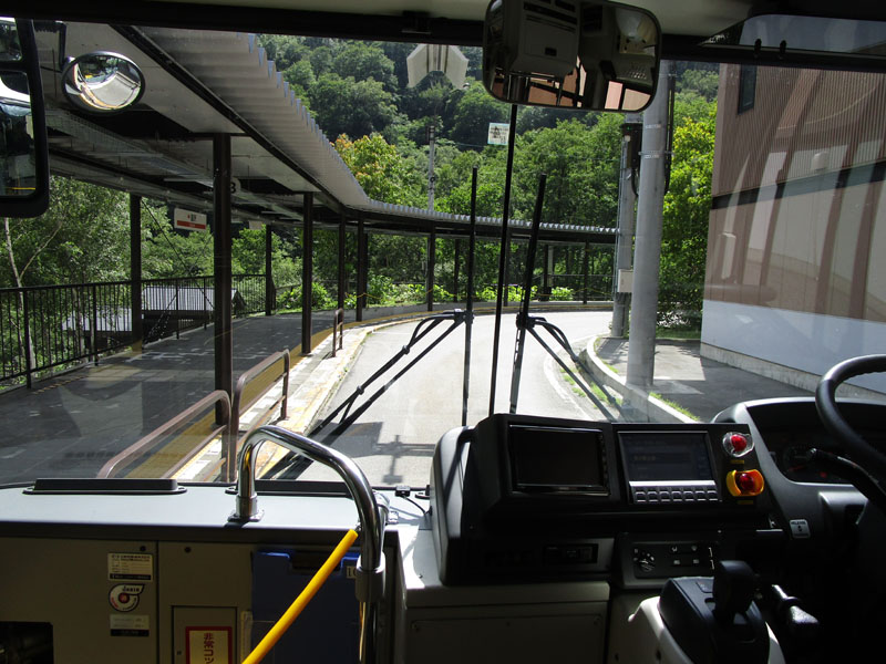 ロープウェイ、ケーブルカーと乗り継ぎ、関電の電気バスに乗る。