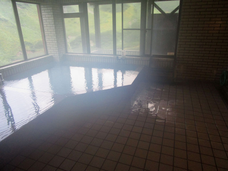 雷鳥沢ヒュッテと違い、温泉と温水の湯船が同じエリア内にあるので、いちいち服を着る必要がない。