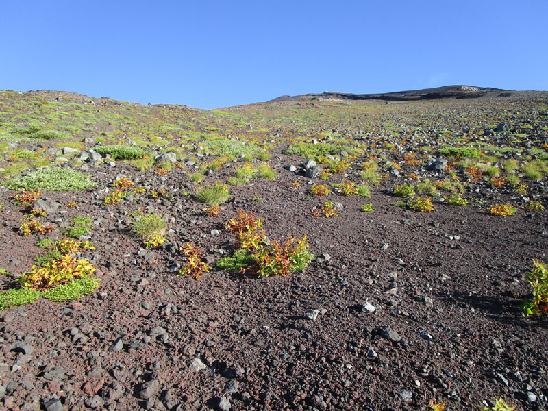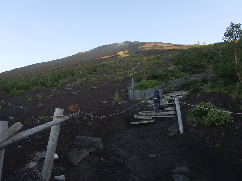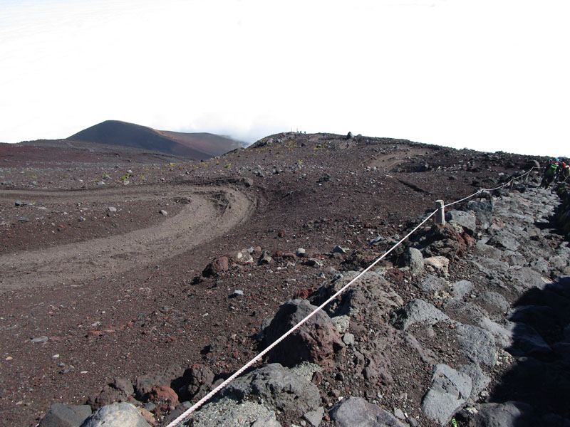 途中、頂上から6.5合目くらいまではブル道を通る方法もあり、膝には優しそうだが、