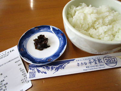 いつも食べていた山賊焼定食がなくなっている。残念。そこでご飯単品にする。