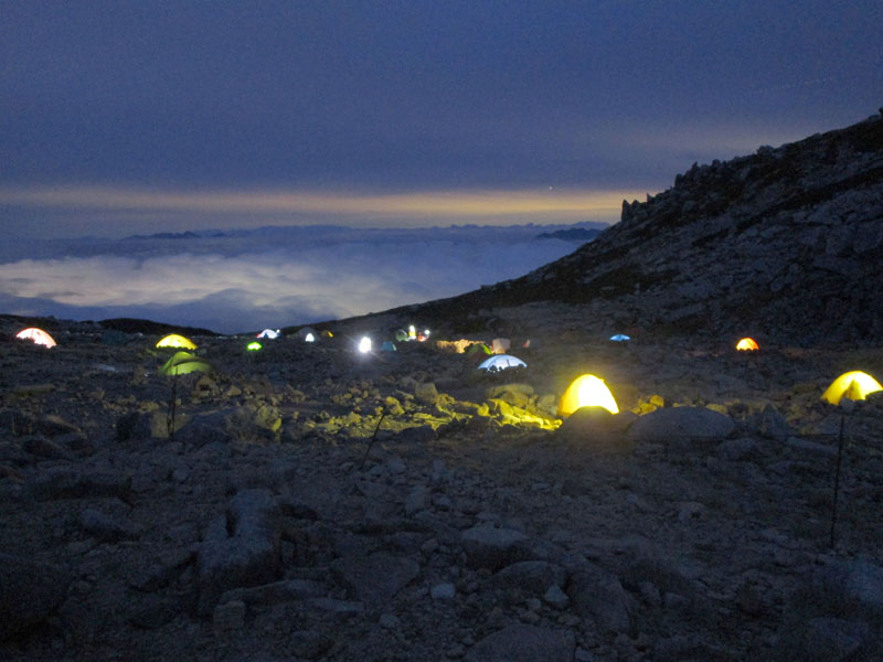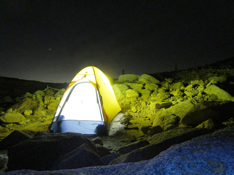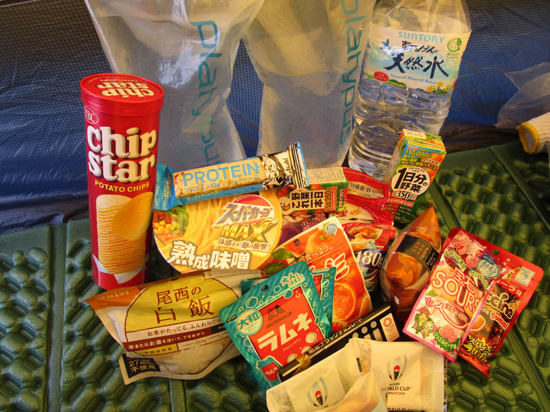登山口から1時間半と、搬入量に余裕があるので、個性的な装備が多い。