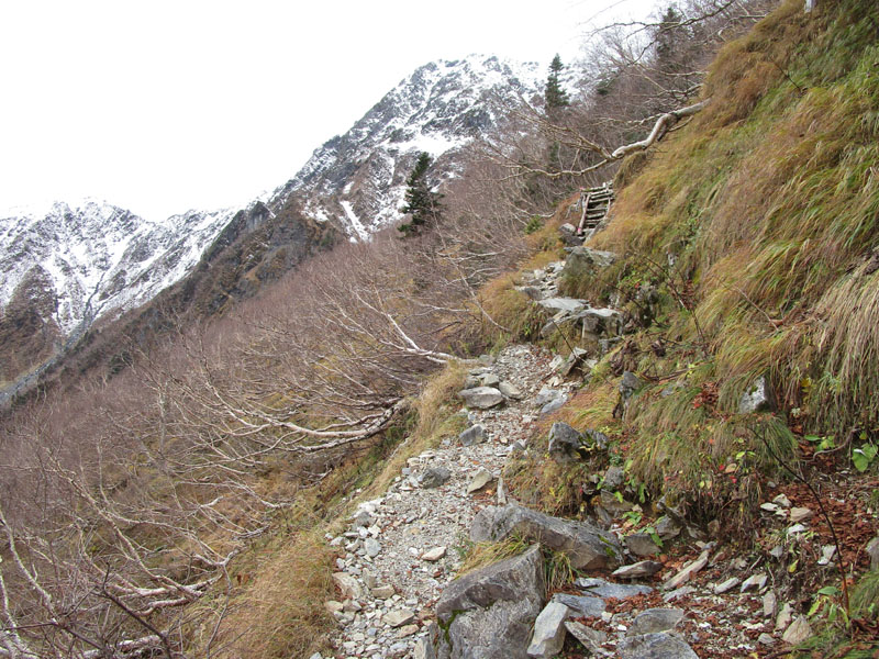 雪がついて非常に危険。アイゼン・ピッケルが必要だ。