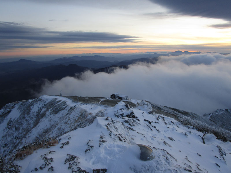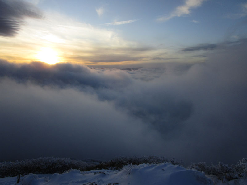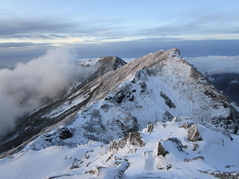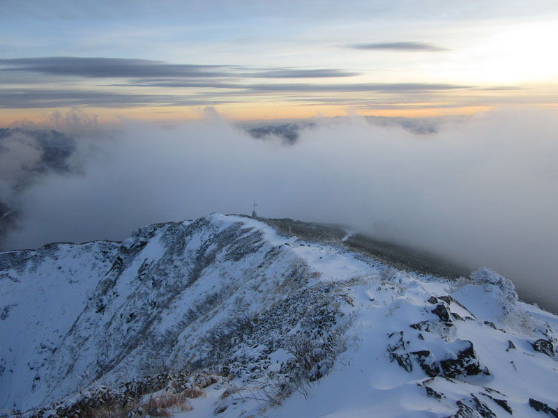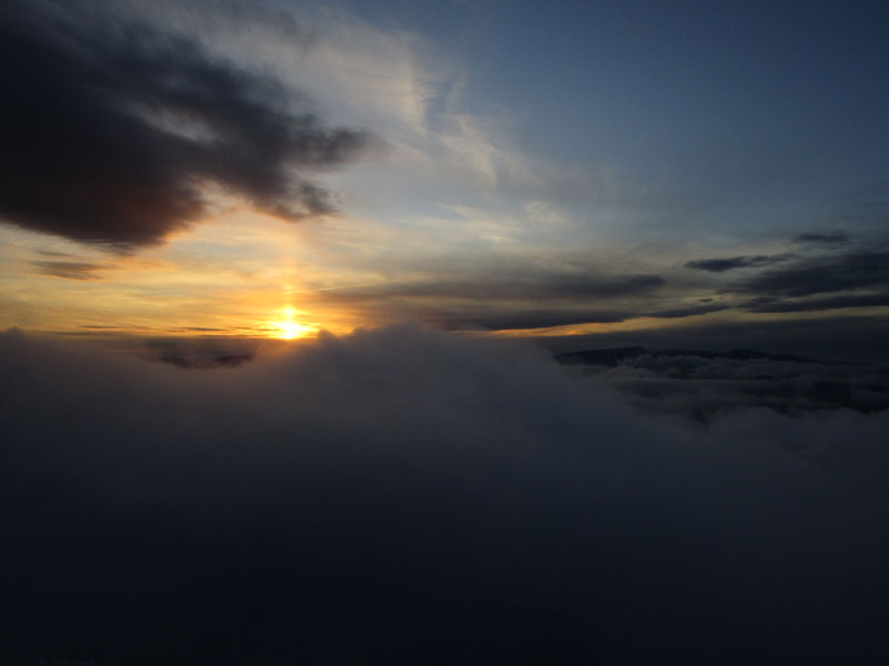 夕方になってくるとガスが取れてきたので山頂を目指す。