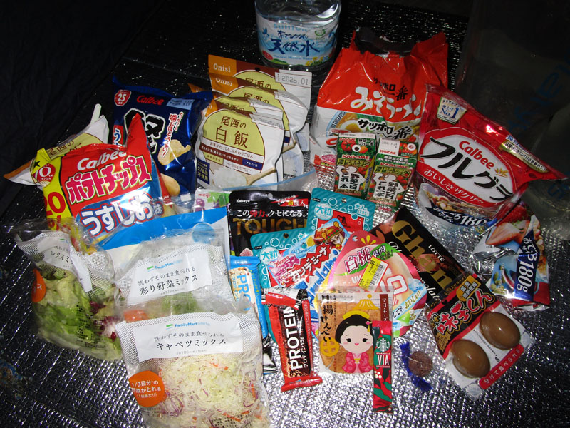 寒いので、外でお湯を沸かし、アルファ米を作り、館内に持って行って食べる。