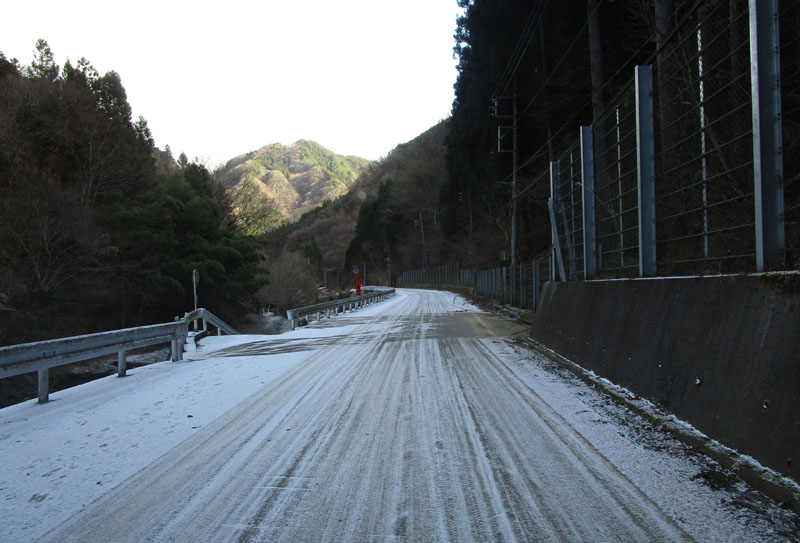道路にも積雪があり、ノーマルタイヤでは難しい。(画像は停車して撮影)