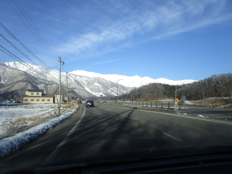 白馬が近づくと正面には白馬五竜スキー場が見える。