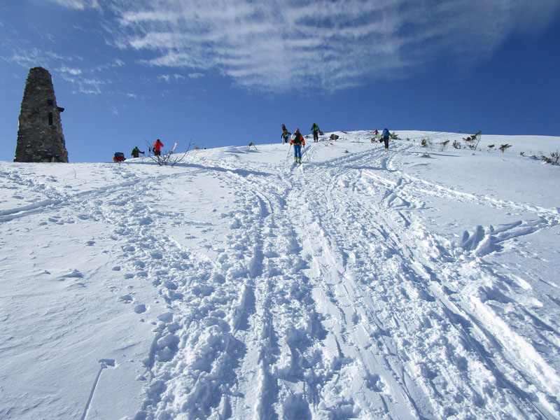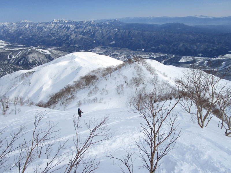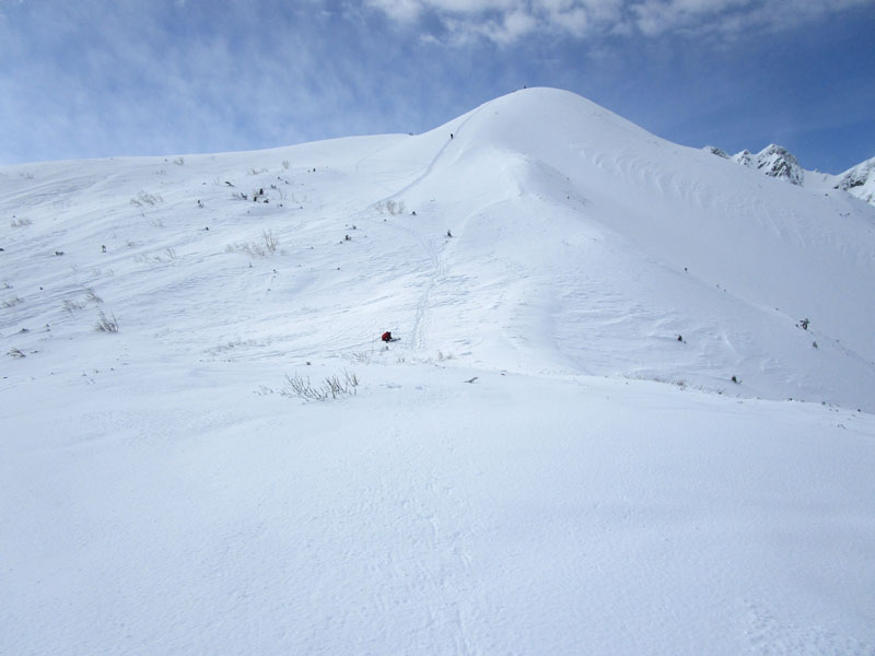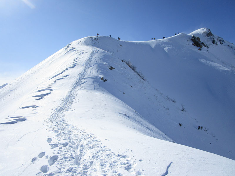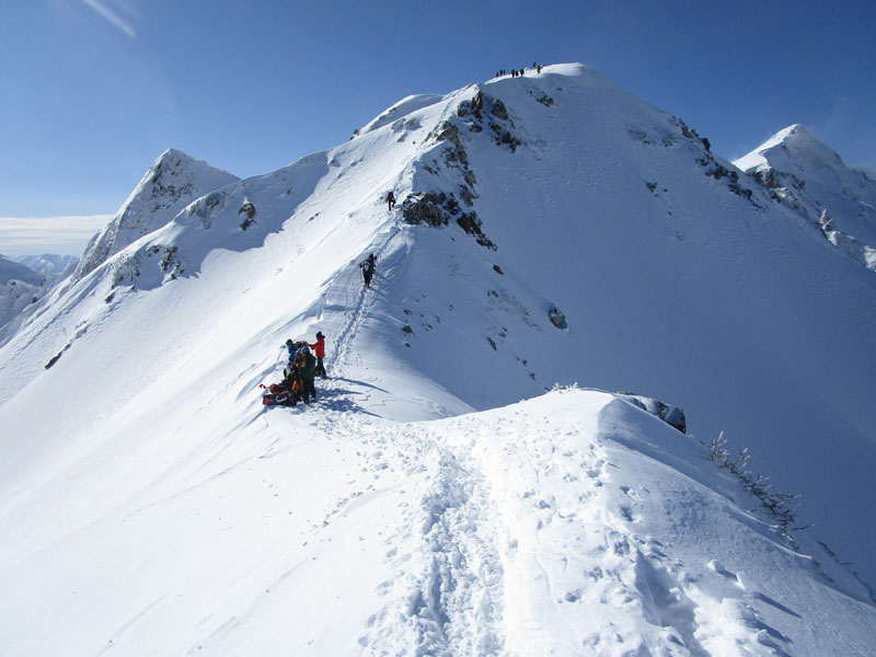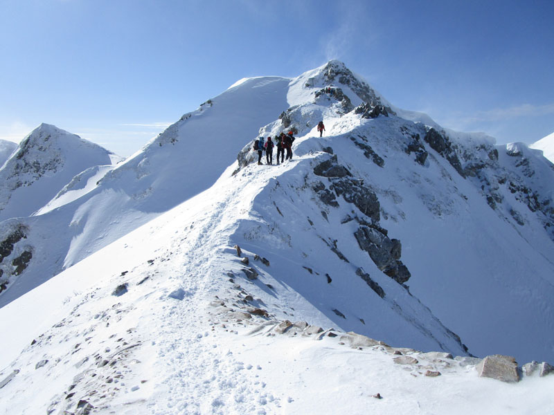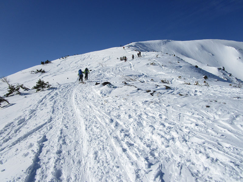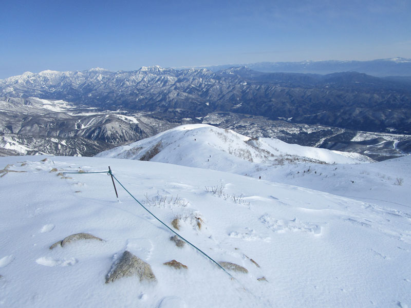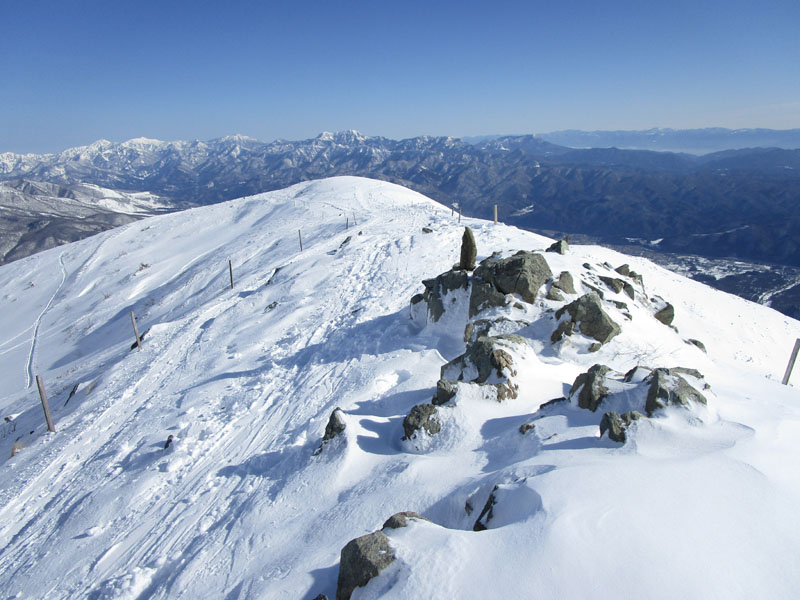 ここから先は稜線が左右に切れ落ちているので、雪が硬いときは滑落に要注意。